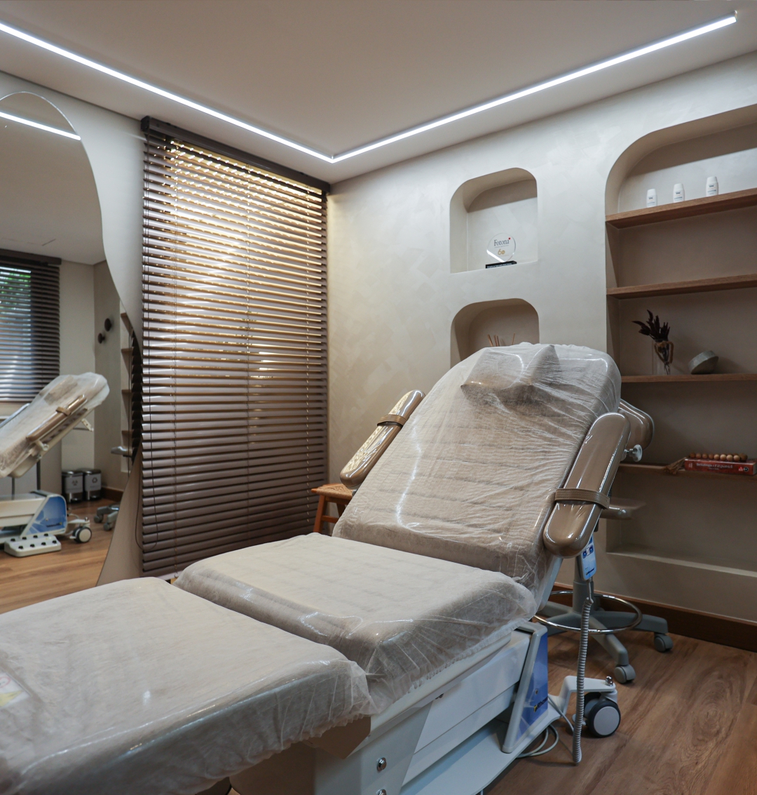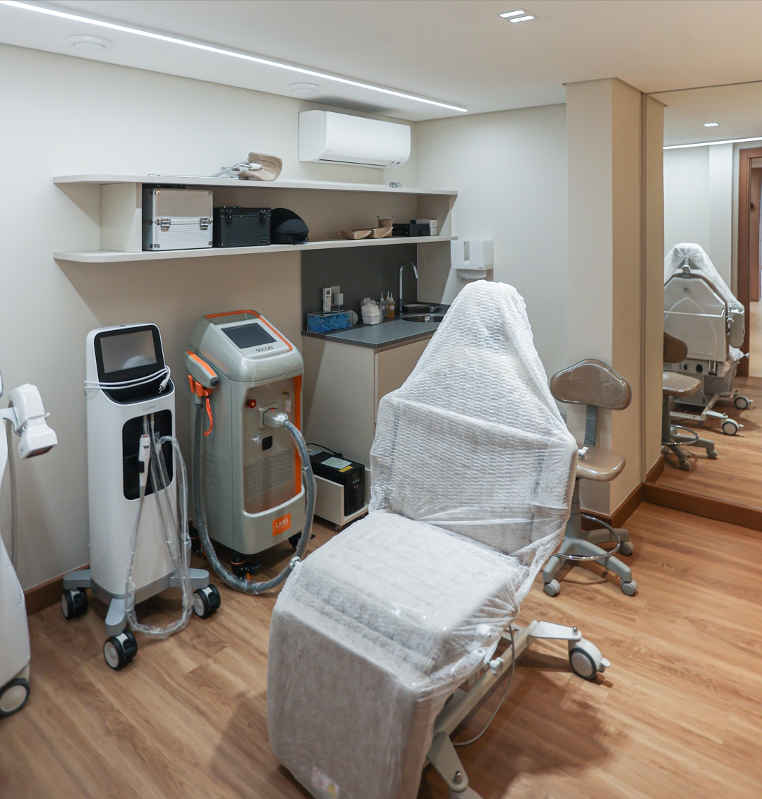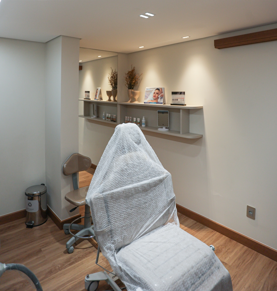 Cada detalhe da nossa clínica foi pensado para proporcionar uma experiência de conforto, segurança e bem-estar. Unimos um design sofisticado e um ambiente acolhedor aos equipamentos dermatológicos mais modernos do mercado, garantindo que seu tratamento seja tão agradável quanto eficaz.