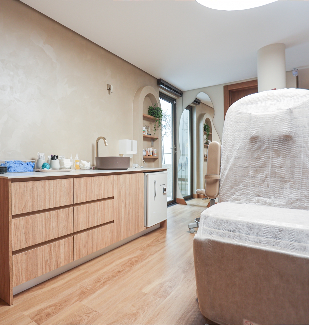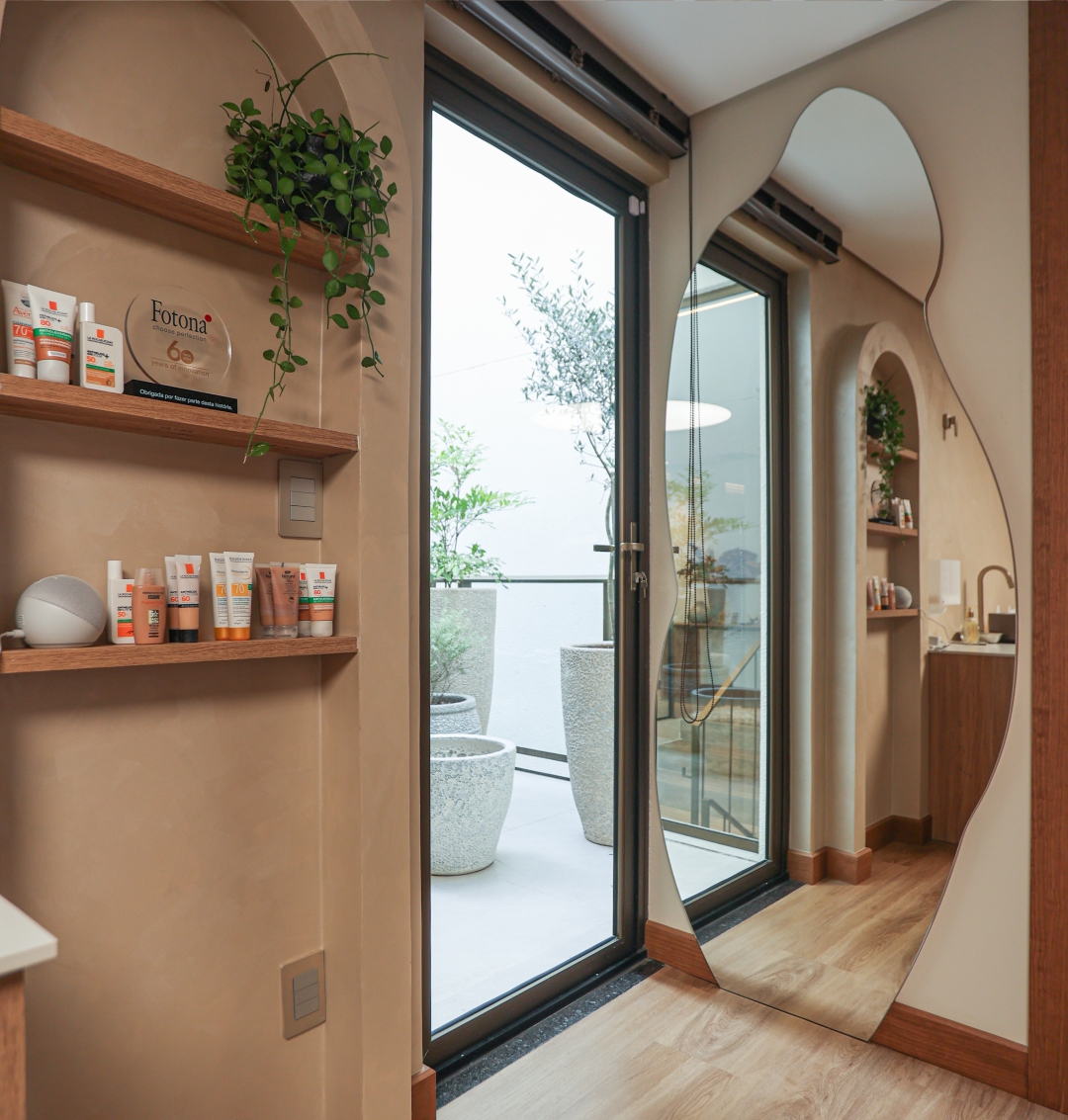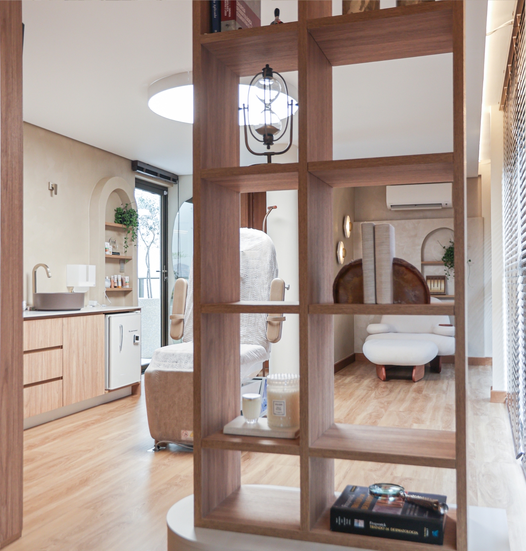 Cada detalhe da nossa clínica foi pensado para proporcionar uma experiência de conforto, segurança e bem-estar. Unimos um design sofisticado e um ambiente acolhedor aos equipamentos dermatológicos mais modernos do mercado, garantindo que seu tratamento seja tão agradável quanto eficaz.